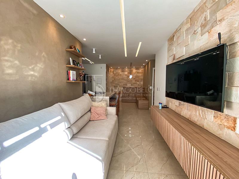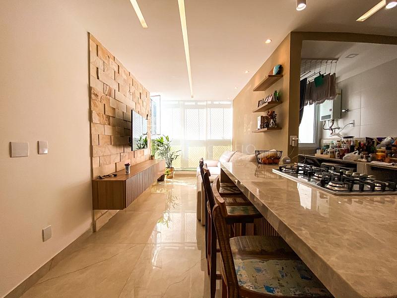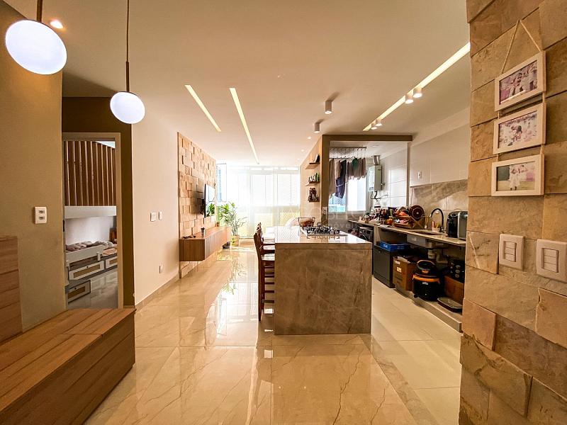 O apartamento possui um lindo jogo de iluminação, proporcionando um ambiente aconchegante e moderno.