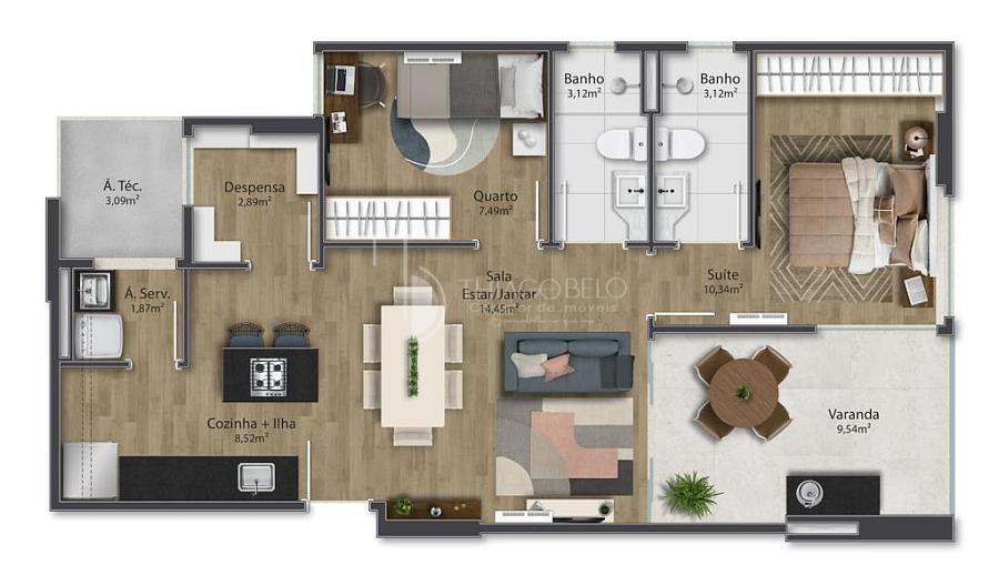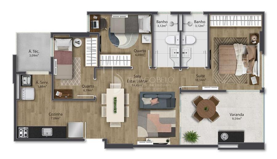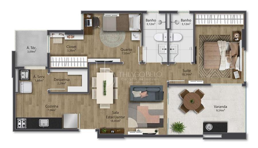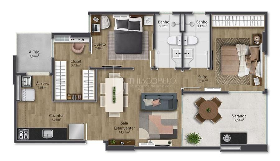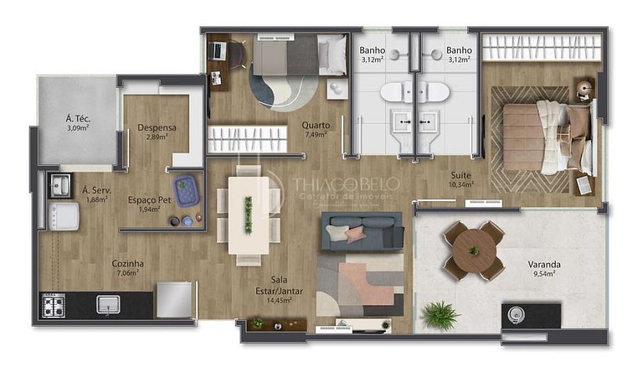 3 dormitórios (1 suíte)