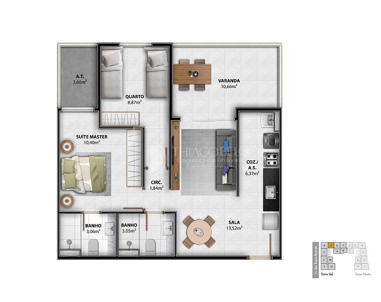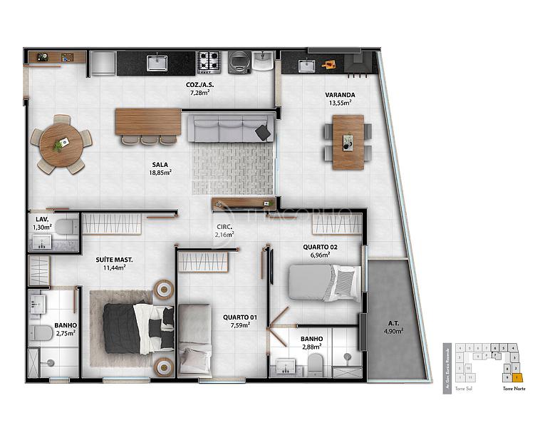 • 02 e 03 quartos com suíte