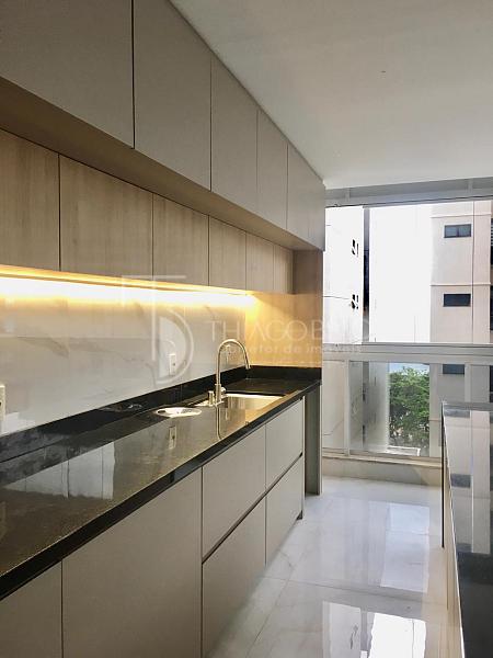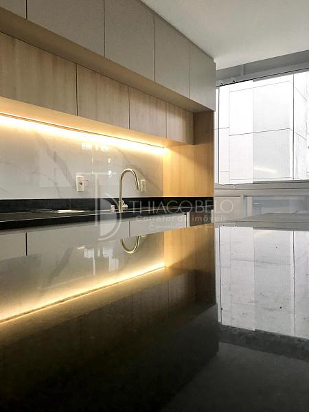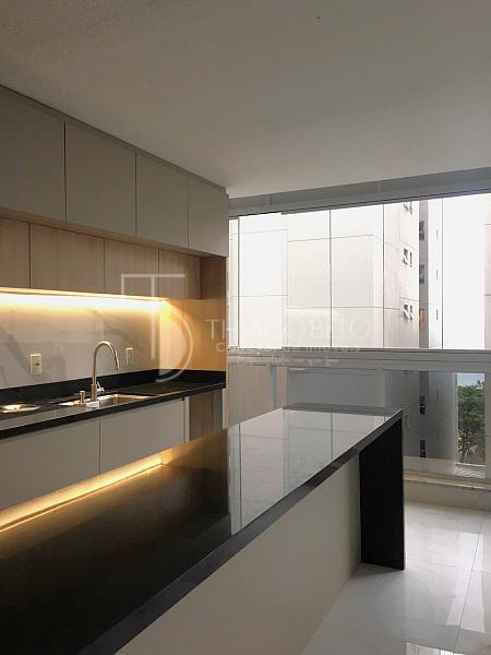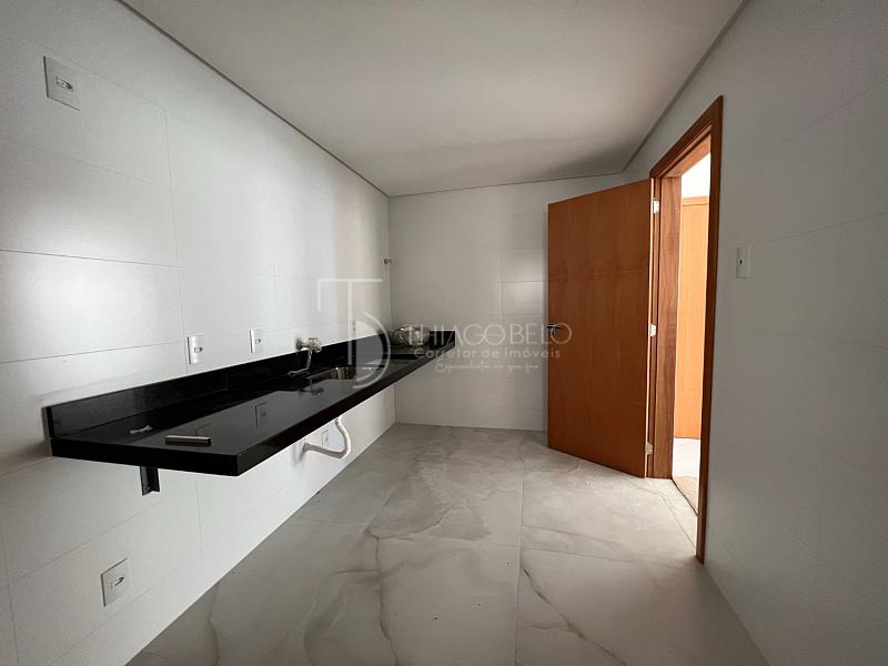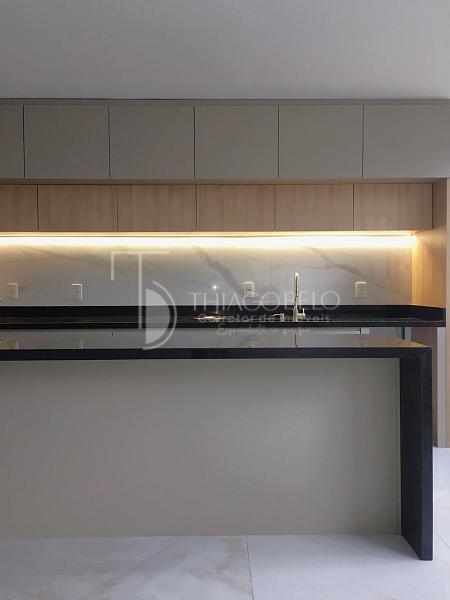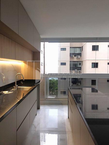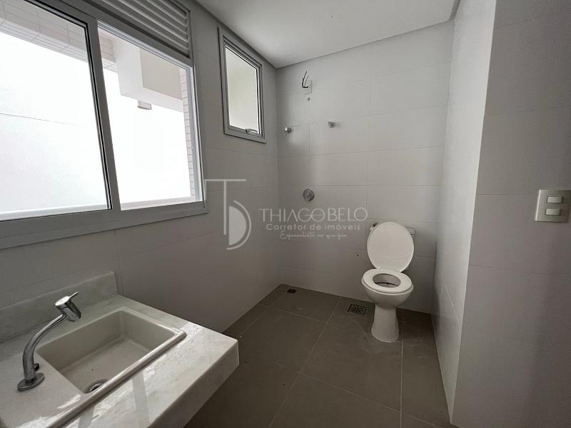 • Detalhes de qualidade incluem fechamento de vidro na varanda, bancadas de mármore nos banheiros, lavanderia espaçosa com bancada de granito e cuba, piso porcelanato de alta qualidade em todos os ambientes e forro de gesso com pontos prontos para instalação elétrica e de luminárias.