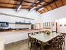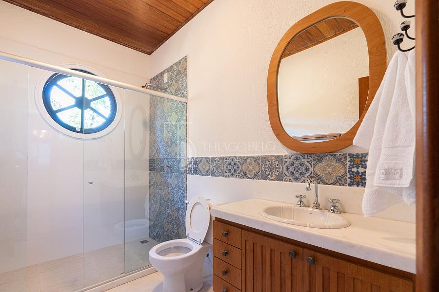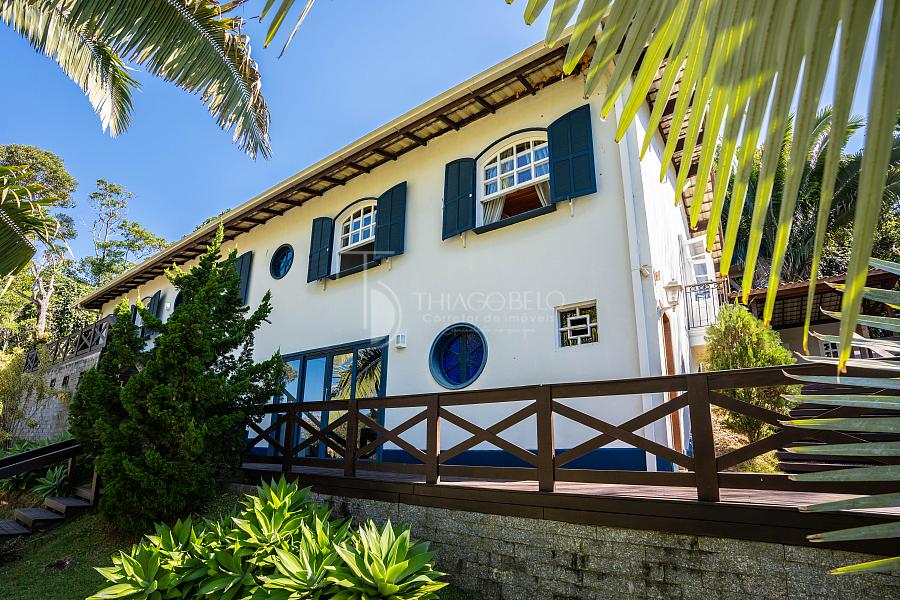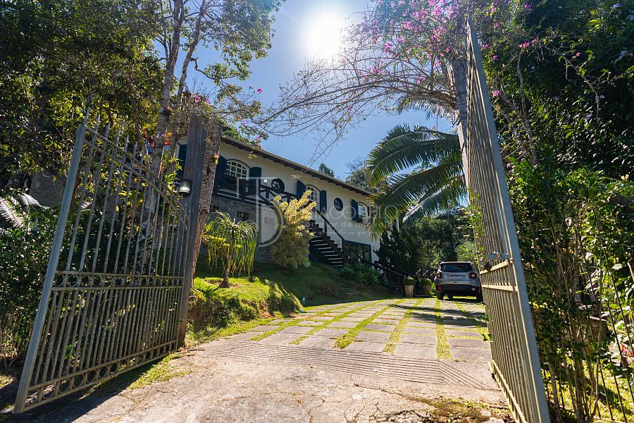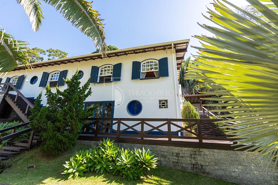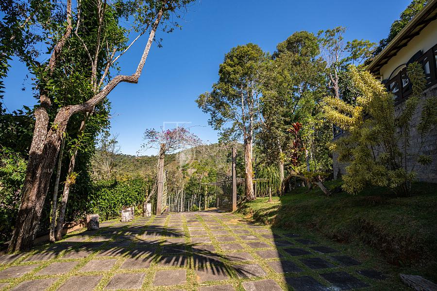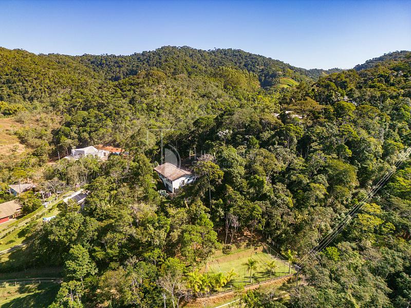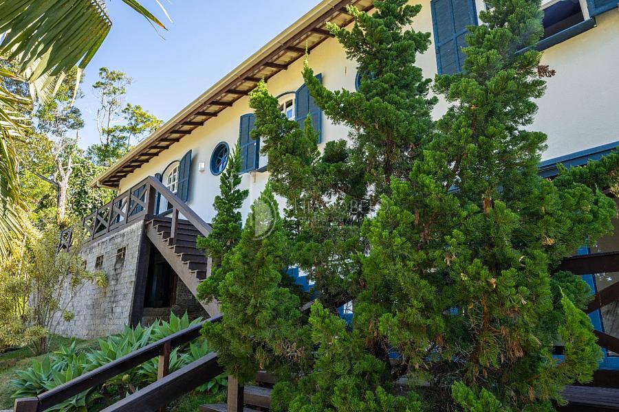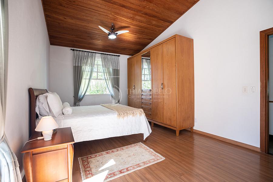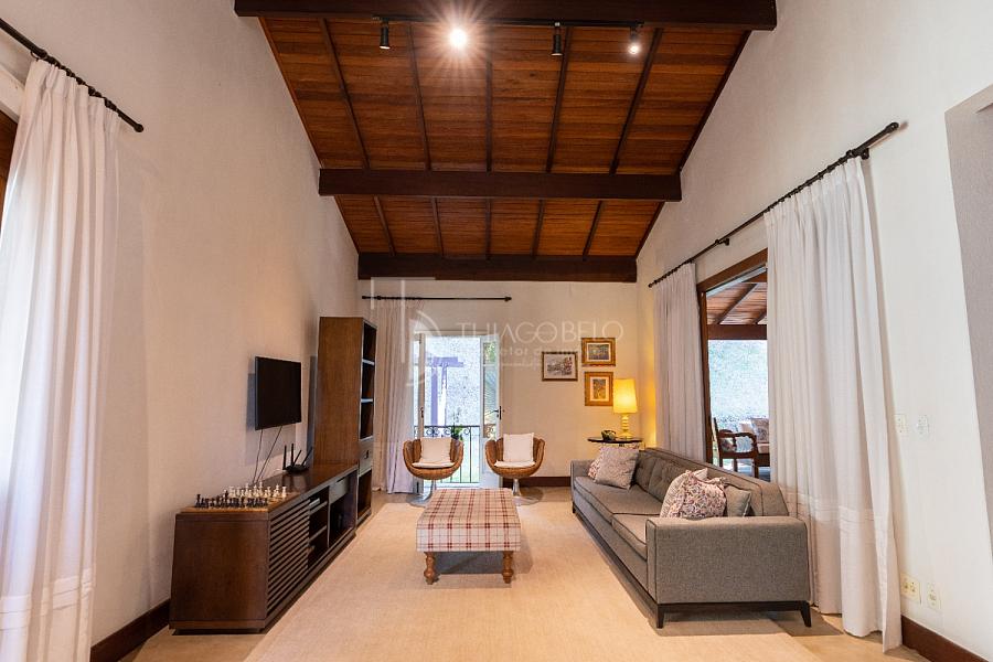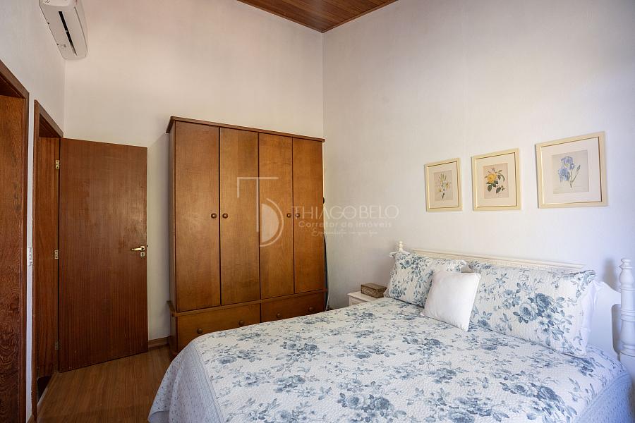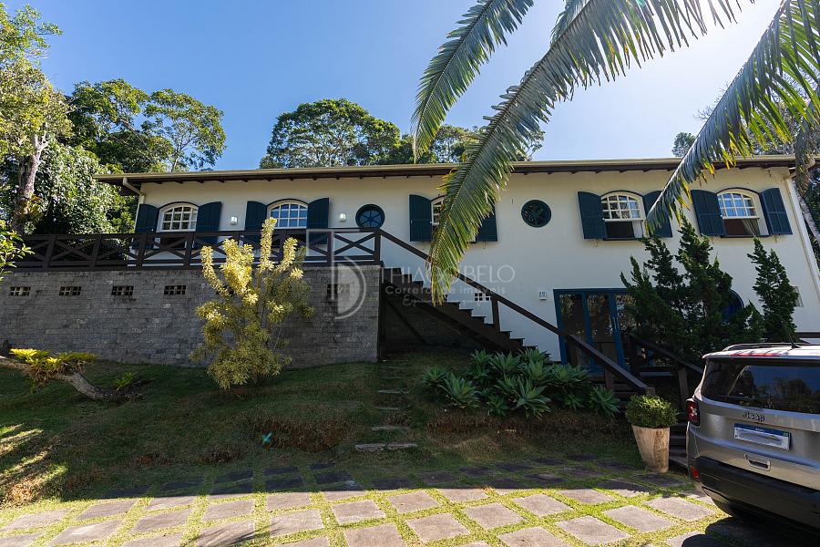 A propriedade conta com 700 m² de construção em um terreno de 3.800 m². O térreo dispõe de uma suíte e uma dispensa. O primeiro pavimento inclui varanda em L, duas salas, quatro quartos (sendo duas suítes), três banheiros e uma copa e cozinha em conceito aberto.