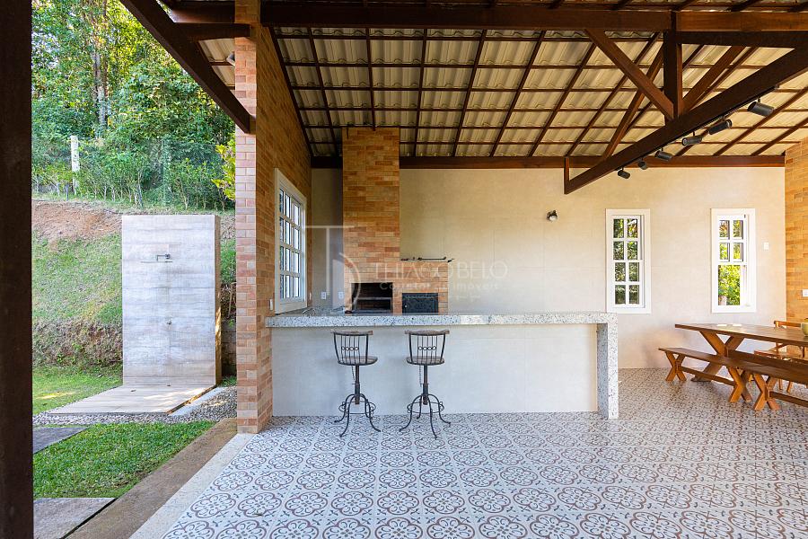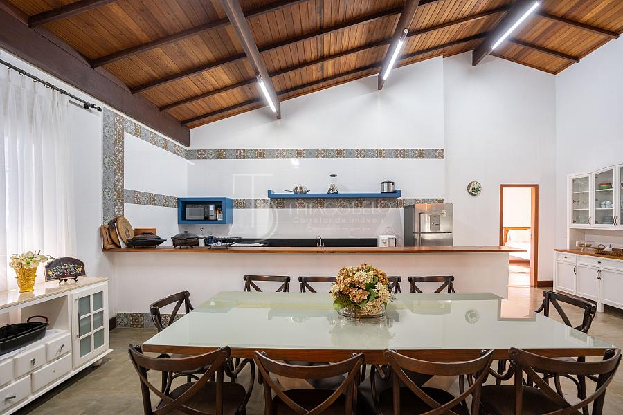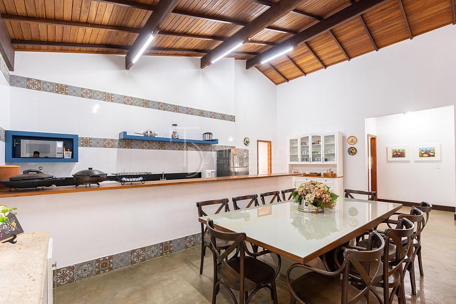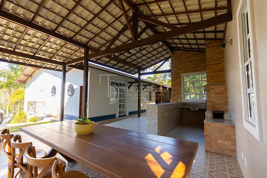 A área externa é um encanto à parte: gramada, com percolado, lavanderia, e uma área gourmet completa com churrasqueira, forno, fogão a lenha, pia, mesa com quatro cadeiras, bancada e um banheiro externo. Para os amantes de futebol, o campo iluminado é um grande diferencial!
