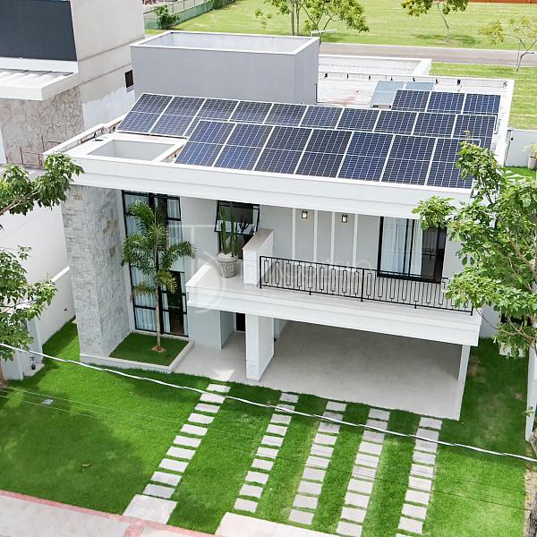 Com generosos 475 m² de terreno e 360 m² de área construída, oferece 4 suítes, sistema de Boiler, energia solar, piscina aquecida, sauna e espaços integrados para sala de estar, jantar e cozinha.