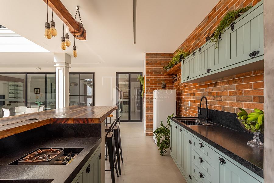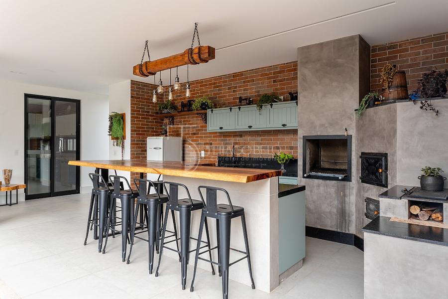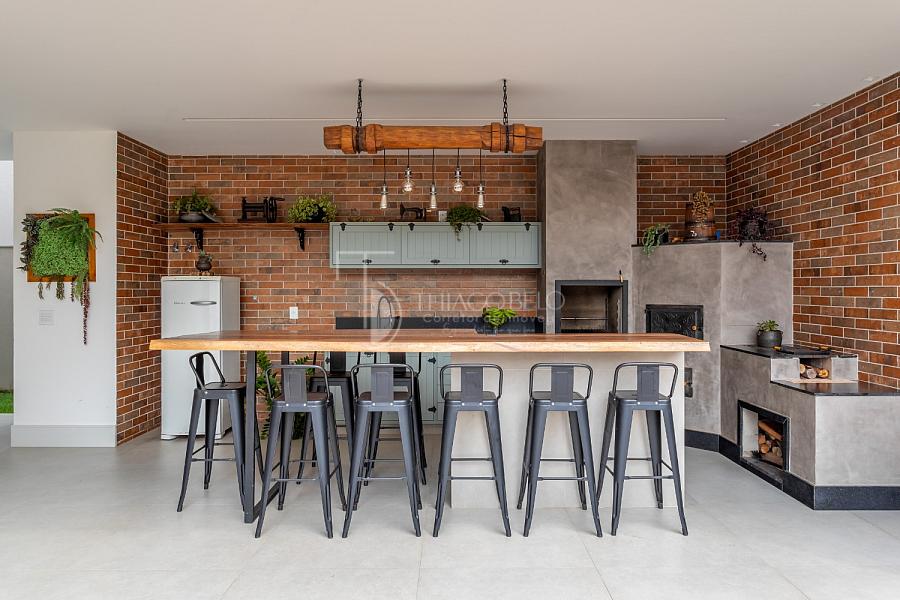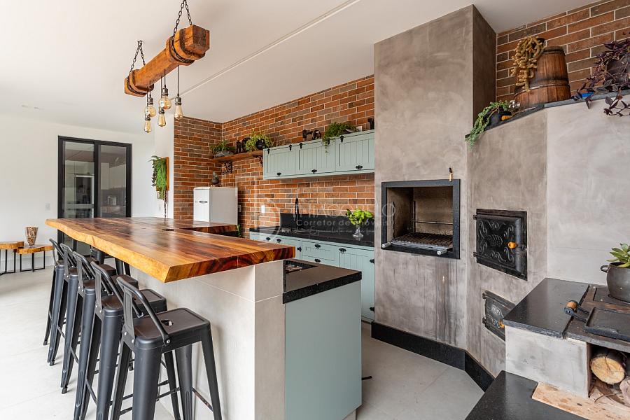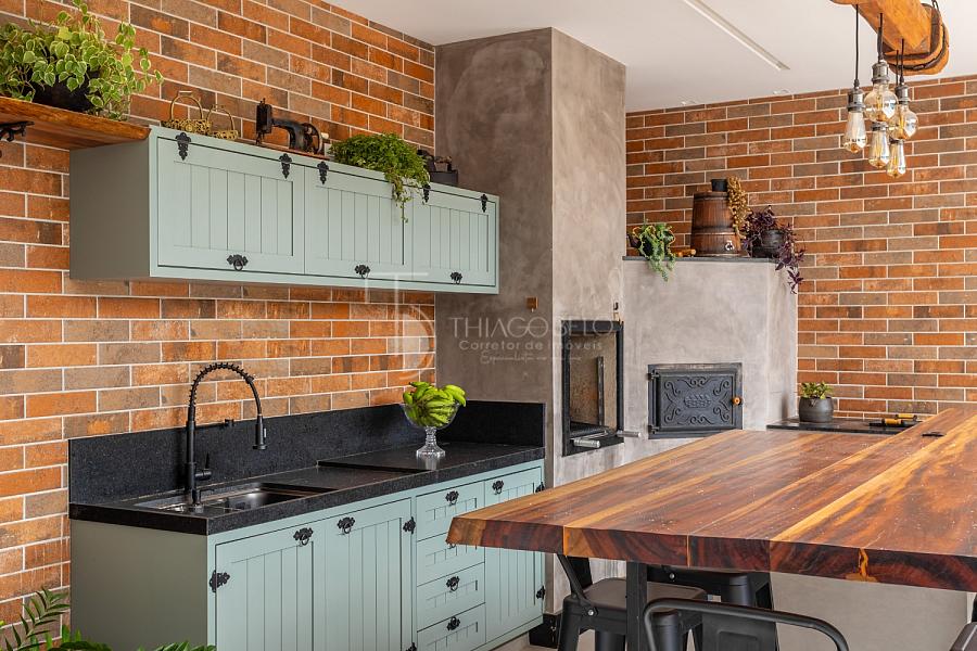 • Área gourmet completa com fogão e forno à lenha, ideal para encontros e celebrações.