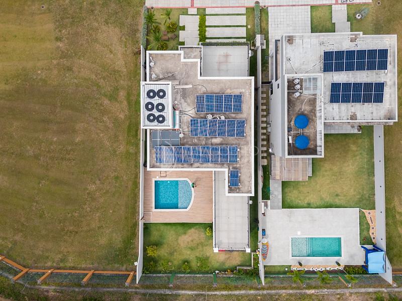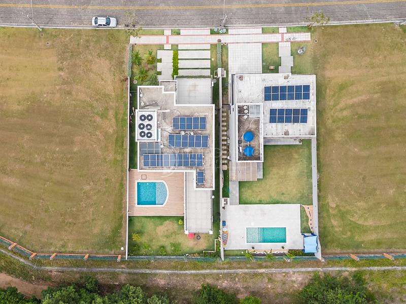 • Energia fotovoltaica com placas solares que abastecem toda a casa, tornando-a ecologicamente sustentável.