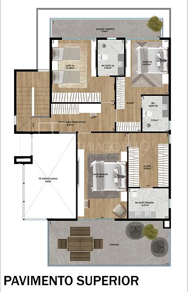 04 quartos, todos suítes, incluindo 01 suíte master com closet;