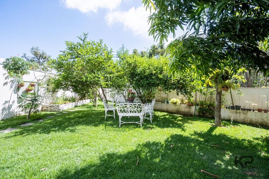 O quintal é um verdadeiro convite para quem ama a natureza, com muitas árvores frutíferas e um ambiente super aconchegante. E o melhor de tudo é que o vizinho de fundo é uma linda lagoa com área de preservação, proporcionando uma vista deslumbrante e uma sensação de paz e tranquilidade.