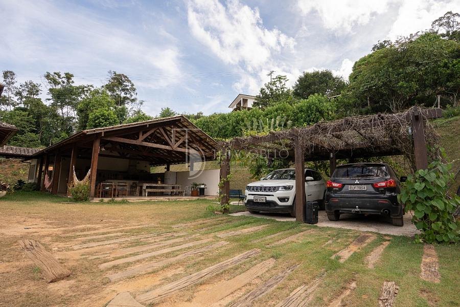 O terreno de 3300 metros quadrados oferece muitos atrativos, incluindo uma área gourmet, sauna, fogo de chão, casinha de boneca, viveiro de pássaros, pergolado e muito mais. A casa é escriturada, mas é necessário fazer o desmembramento, pois é conjunta com dois irmãos.