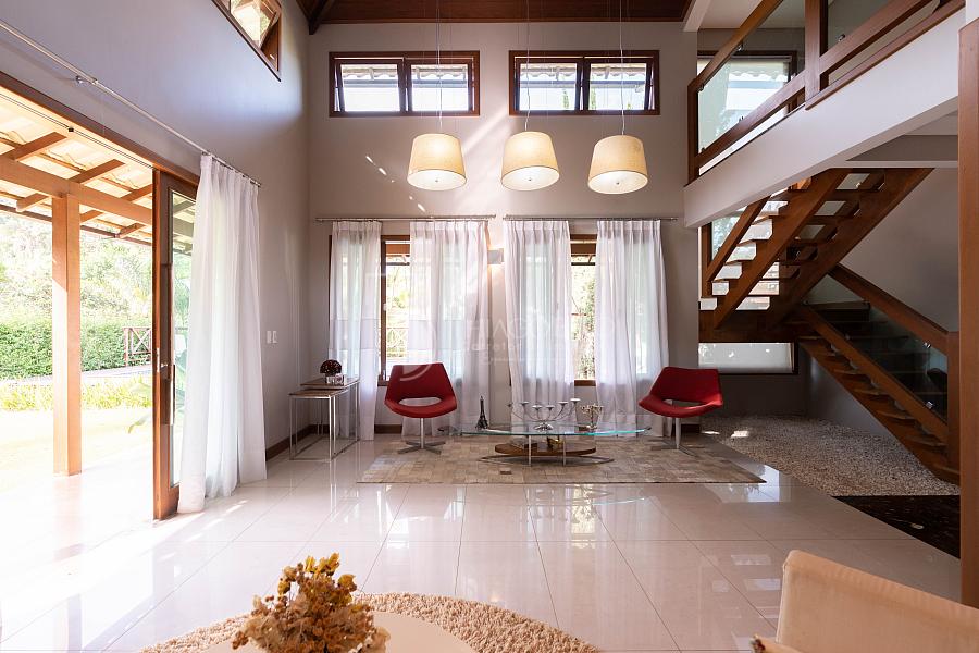 A casa é limpa e arejada, com um pé direito duplo e mezanino para a sala de estar, onde você pode desfrutar de uma lareira e momentos agradáveis com amigos e familiares.