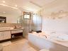 A casa tem uma suíte com banheira e quatro quartos, além de sistema de aquecimento central nos chuveiros, Wi-Fi, TV paga, jogos, casinha de bonecas, jardim e pomar. Móveis de alta qualidade em toda a casa garantem conforto e elegância.