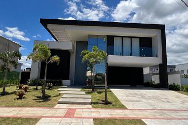 A ausência de paredes no térreo e o uso de vidros maximizam a transparência das visuais e proporcionam uma sensação de amplitude, enquanto o pavimento superior, protegido por brises-soleil, traz mais privacidade para as suítes e o escritório.