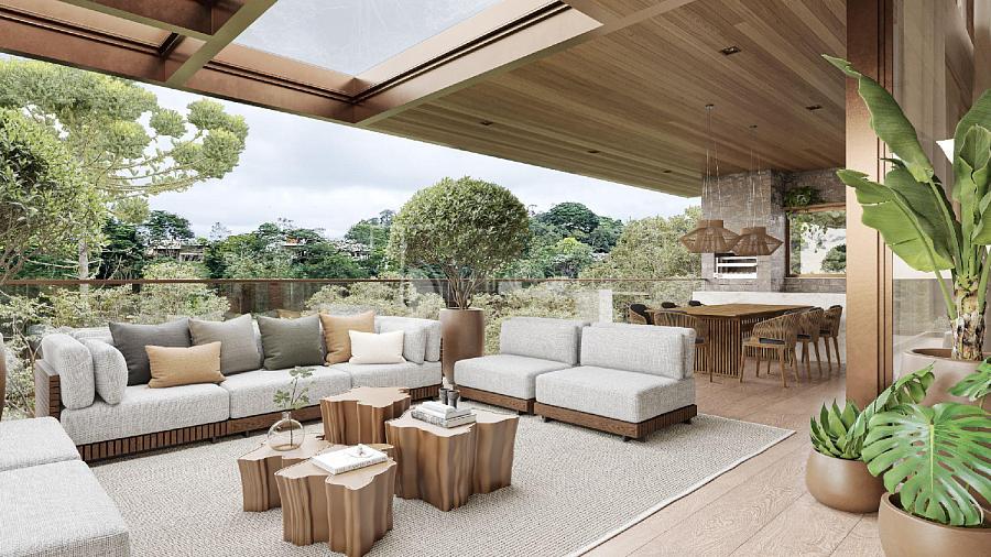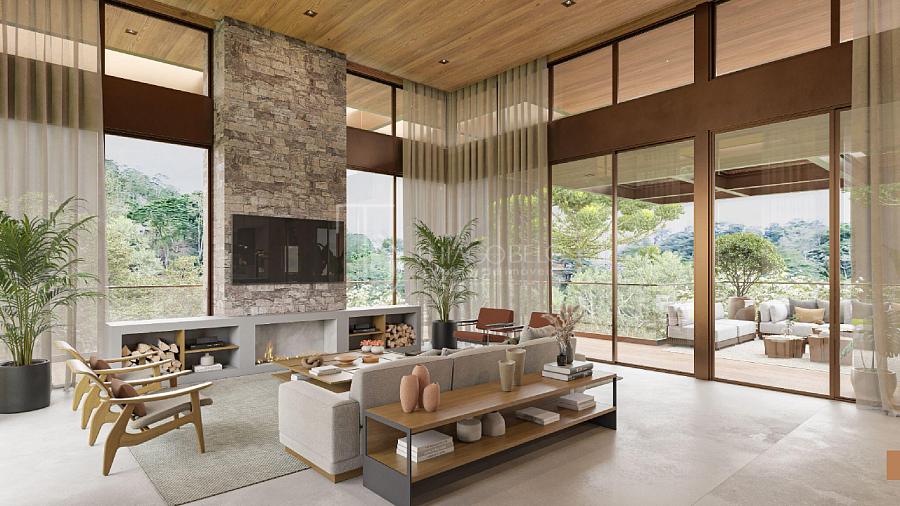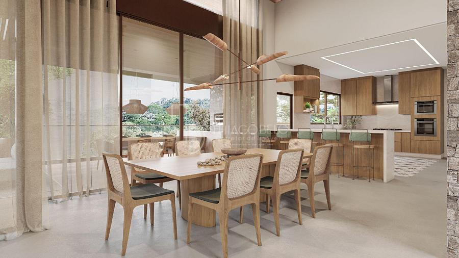 A finesse e elegância nas formas, e a mistura de elementos como madeira e rochas contrastando com o verde da natureza, traz um toque todo especial para a Casa. O amplo espaço nos dá a leveza e respiro que precisamos para aproveitar da melhor forma o cenário que cerca o ambiente.