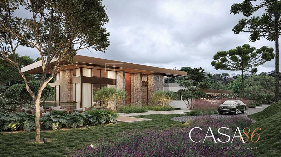 Em um amplo terreno, a casa está localizada em uma das áreas mais calmas do condomínio e, além disso, tem também uma visão privilegiada da mata e principalmente do lago, um dos ambientes mais bonitos do complexo.