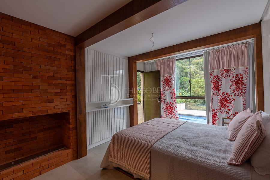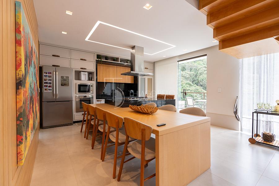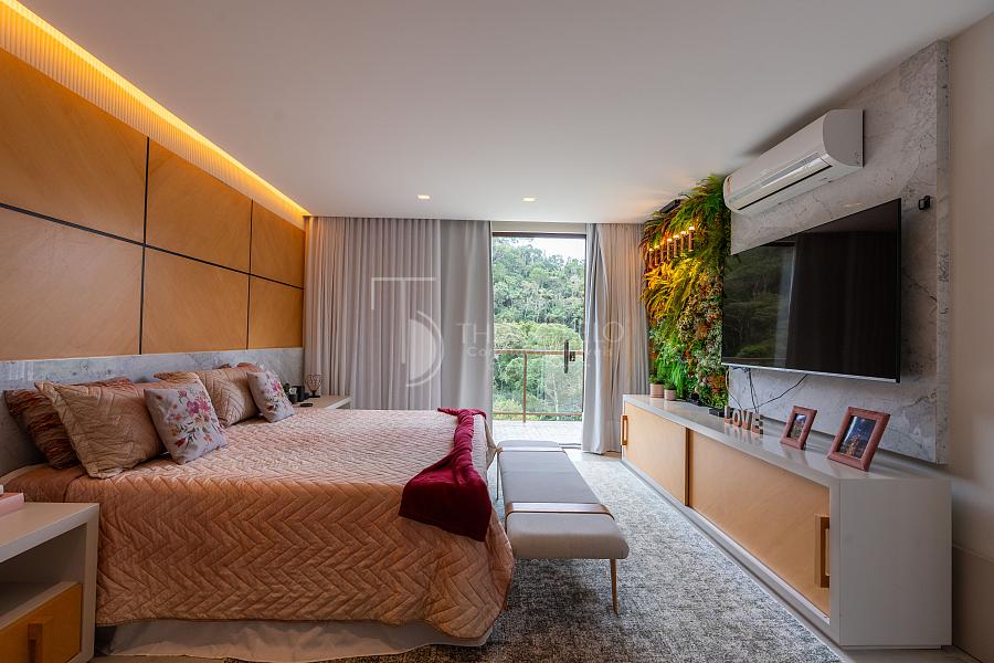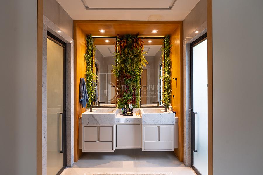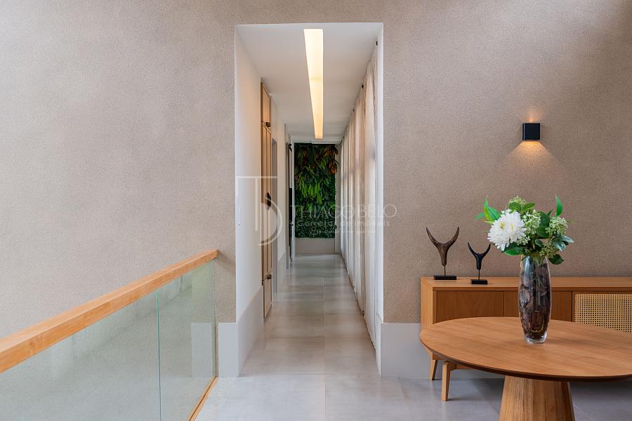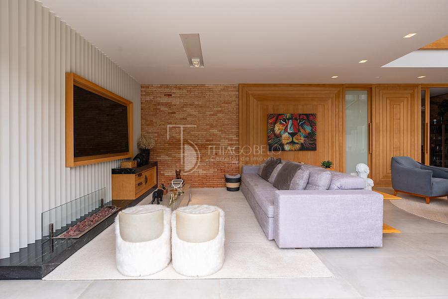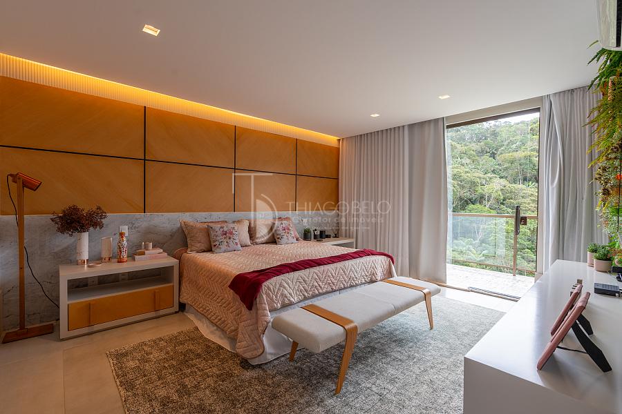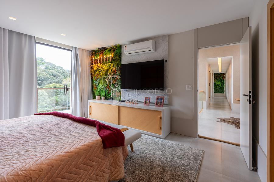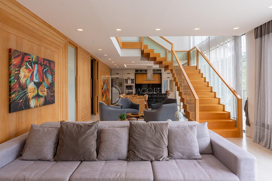 A casa oferece 5 suítes, sendo 2 delas com closets privativos, garantindo privacidade e conforto para todos os moradores e convidados. A cozinha, em conceito aberto, é um convite à culinária gourmet, equipada com os mais modernos aparelhos e uma ilha central para preparar suas refeições com estilo.