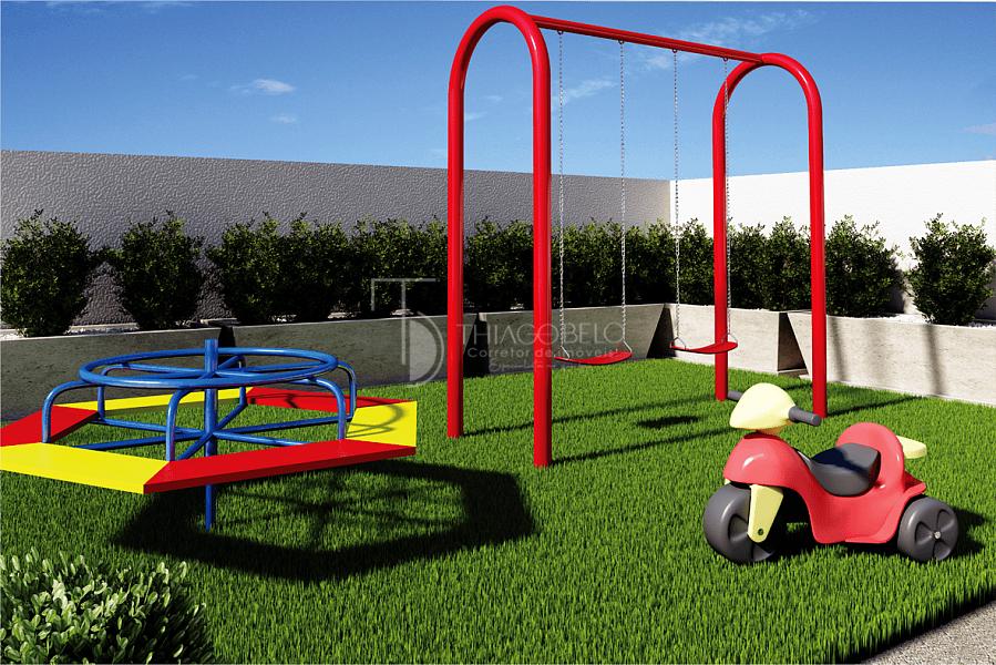 No primeiro pavimento, com 60,13m² de área privativa, você encontra 2 quartos, sendo 1 suíte, banheiro social, sala, varanda, cozinha e área de serviço.