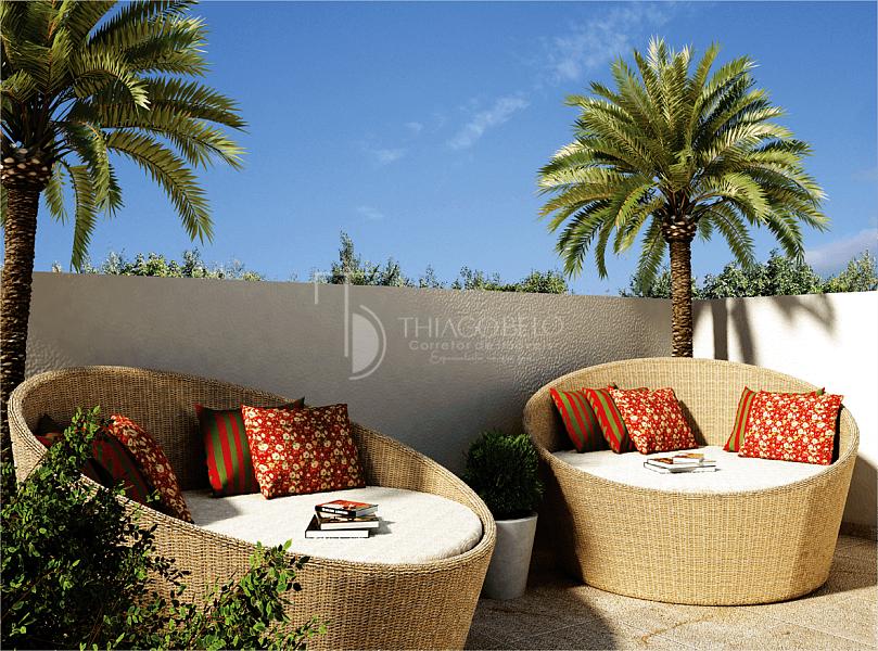 Já no segundo pavimento, com 57,85m² de área privativa, sendo 11,44m² cobertos e 46,41m² descobertos, você pode desfrutar de um hall de circulação de chegada, banheiro, pergolado, previsão para instalação de deck com spa, bancada com churrasqueira e 2 vagas de garagem.