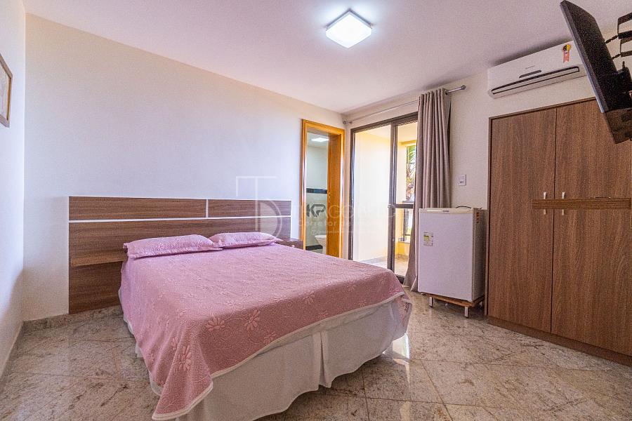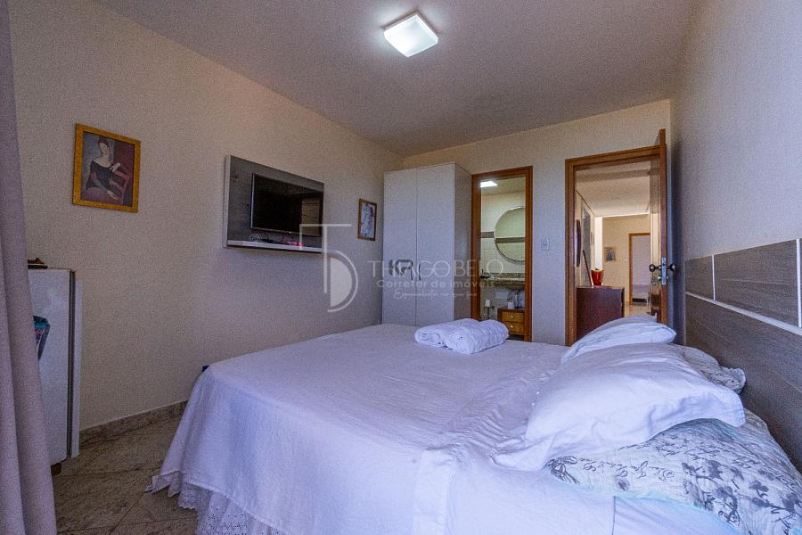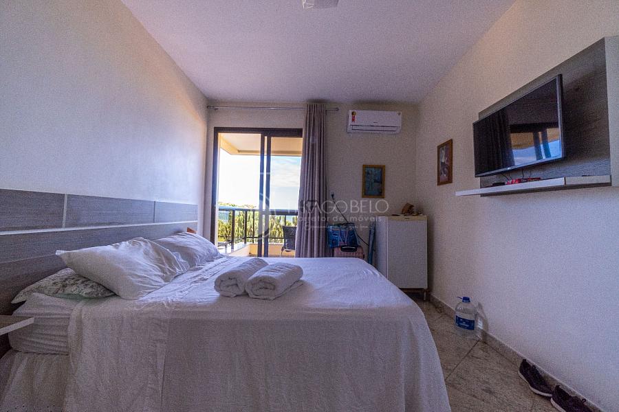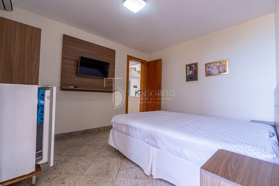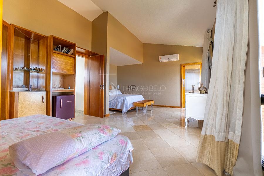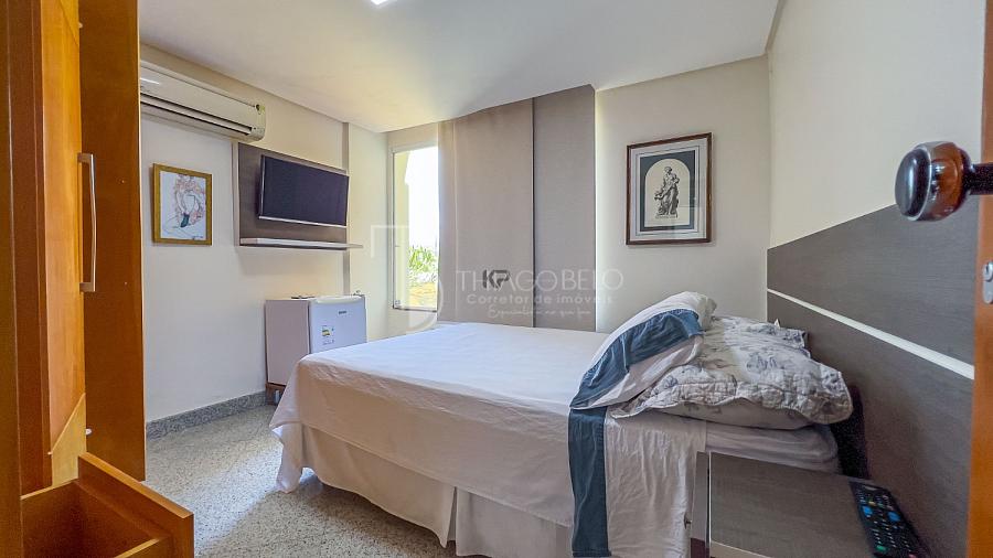 A suíte master conta com uma cama king, cômoda e smart tv, proporcionando ainda mais conforto e privacidade.