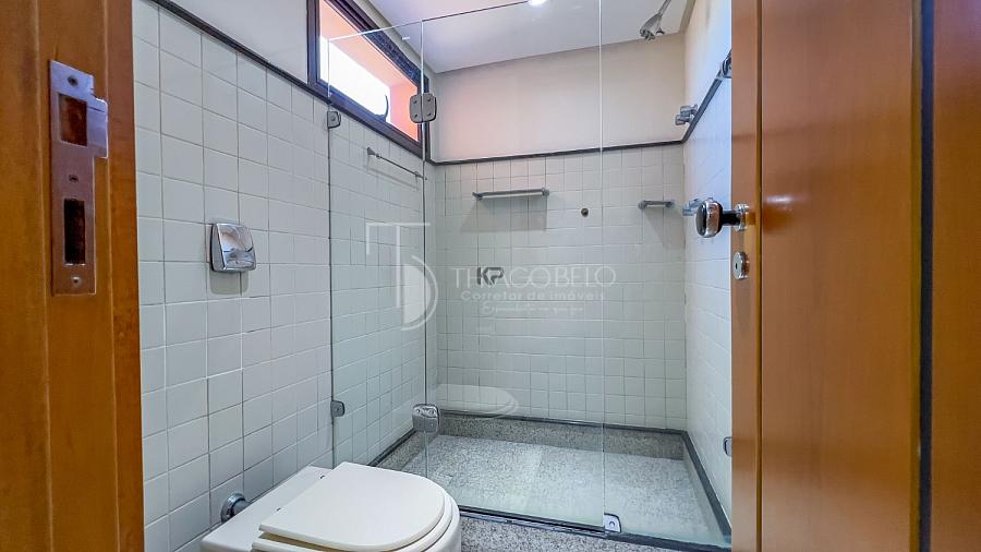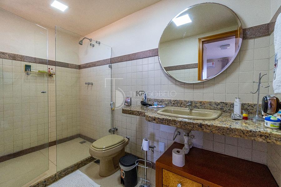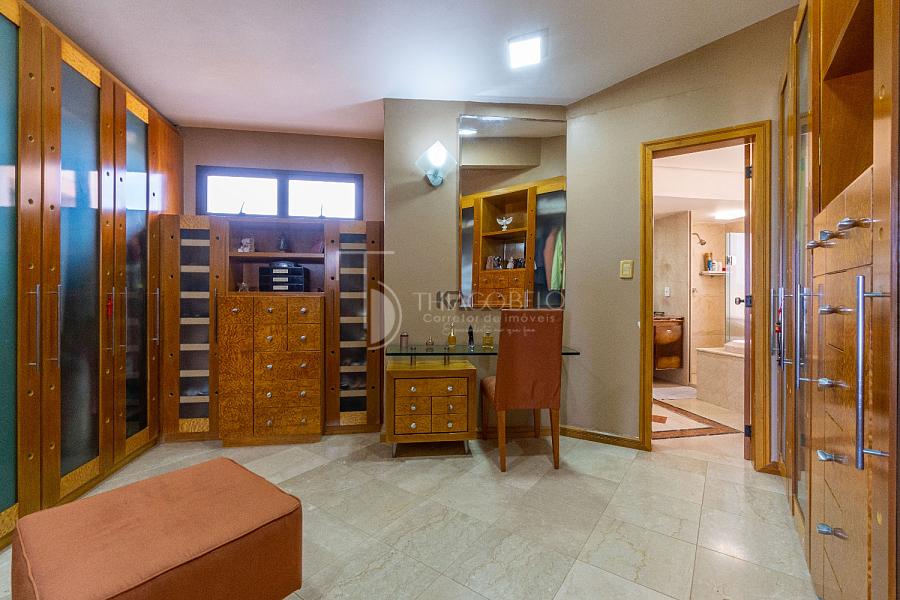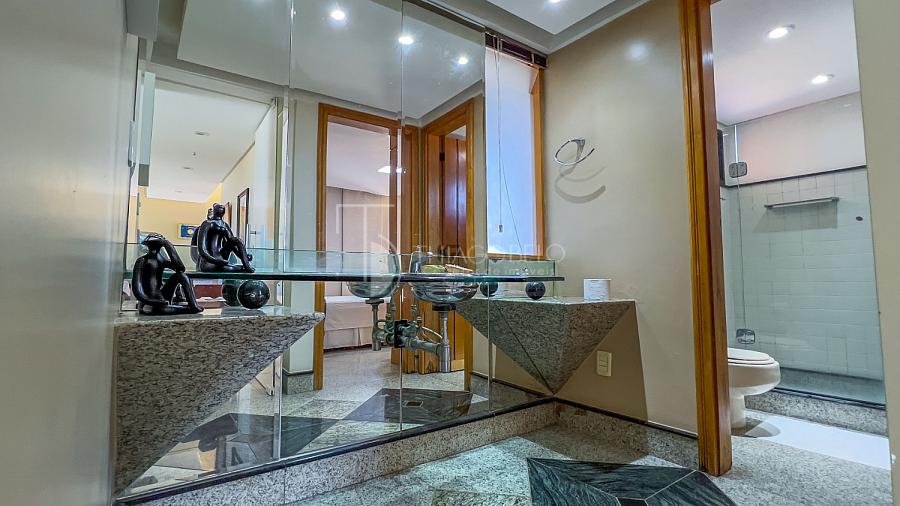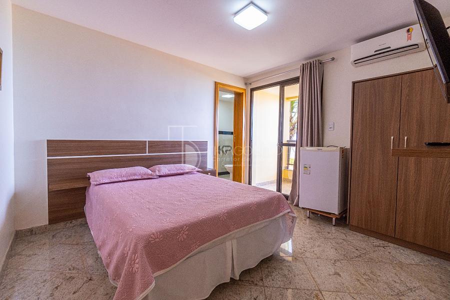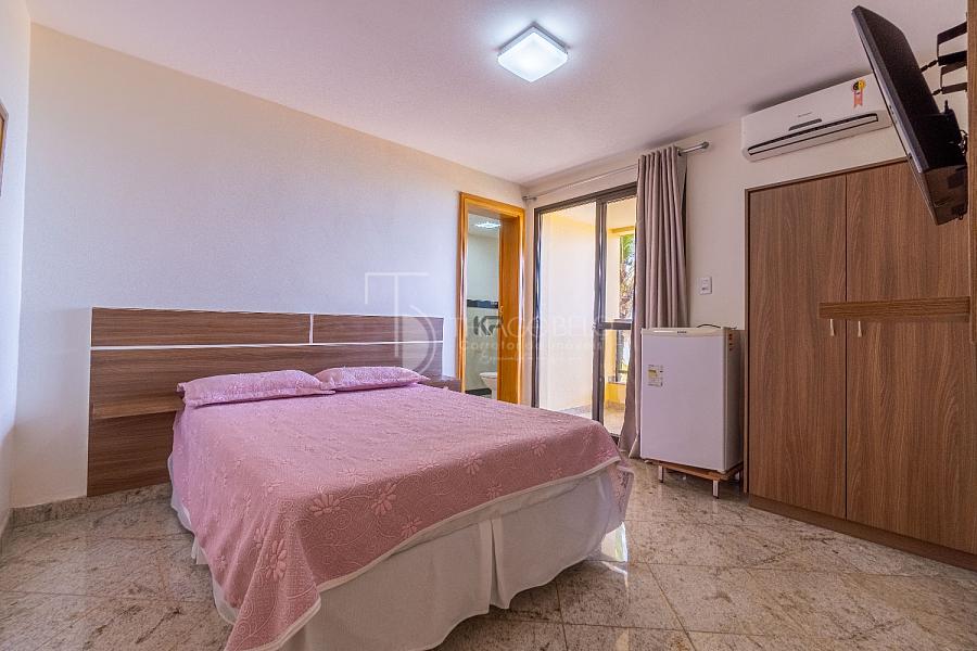 A suíte master conta com uma cama king, cômoda e smart tv, proporcionando ainda mais conforto e privacidade.