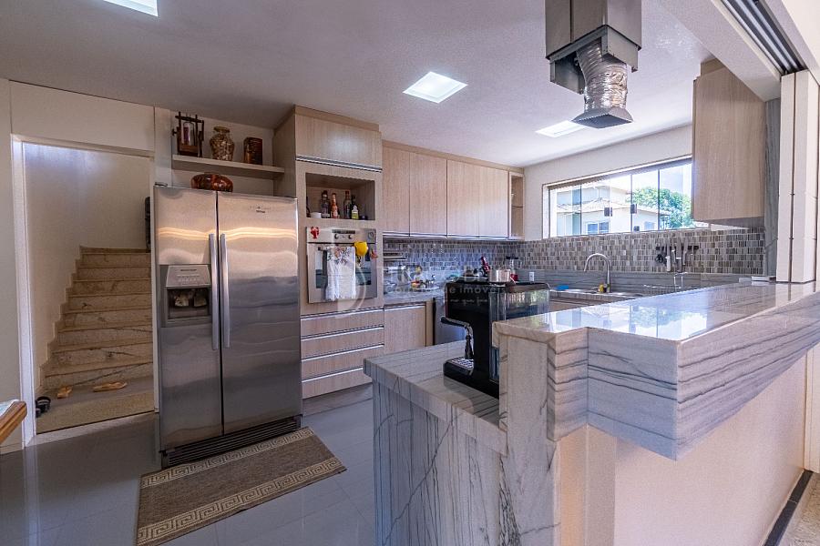 A casa também possui uma cozinha totalmente equipada e área de serviço, além de uma área gourmet com churrasqueira, mesa de madeira, geladeira e fogão. Essas áreas são ideais para reunir a família ou os amigos em momentos especiais e inesquecíveis.